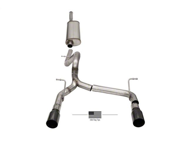 The CORSA Performance Jeep Wrangler JLU catback exhaust system features CORSA's Patented Reflective Sound Cancellation(R) (RSC) Technology allows acoustic engineers to create an aggressive drone free exhaust note, styled specifically to fit the personality of your vehicle. This catback exhaust system moves the muffler to the center of the vehicle providing for better clearance and maximum approach angles for offroad driving. CORSA's full catback exhaust allowed our acoustic engineers to get added deep tonality from the V6 engine creating and AGGRESSIVE V8 LIKE SOUND at idle and under acceleration while maintaininig a DRONE-FREE EXPERIENCE during cruise. Choose from 4 unique tip options: Dump-style for maximum offroad clearance, polished, black or our American Flag tip options. Performance gains are not affected by sound choice.
