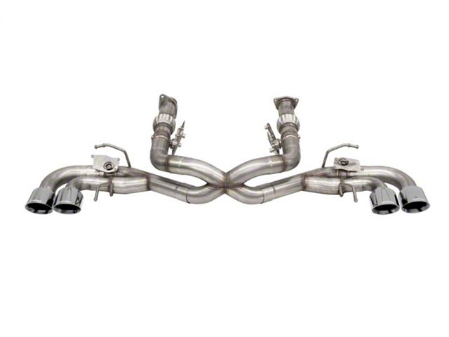 Designed specifically for NPP equipped C8 Corvette, CORSA Performance C8 Muffler Delete NPP & AFM Catback Exhaust System offers aggressive sound and minimizes restrictions for maximum weight savings and performance. CORSA Performance Muffler Delete C8 cat back exhaust systems are designed exclusively for NPP equipped Corvettes to eliminate restrictions, maximize weight savings, resolve check engine lights, and bring the noise. Different from the Track Series Exhaust, the CORSA Performance Muffler Delete exhaust system retains the NPP valve eliminating CEL issues while also allowing for some sound control. To maximize the cruising experience this kit maintains the C8 AFM valve functionality in addition to the C8 NPP valves for the best on-road, in-cabin experience possible. This exhaust system is ideal for C8 drivers looking for the loudest exhaust combination CORSA offers for the NPP equipped C8 Corvette while still seeking to eliminate the multi-displacement flutter present at cruise. Each system has been Track-Tested and Dyno proven to maximize performance producing up to 18 HP and 16 LBS Ft. of TQ. all while shaving nearly 20 pounds from the stock exhaust system.