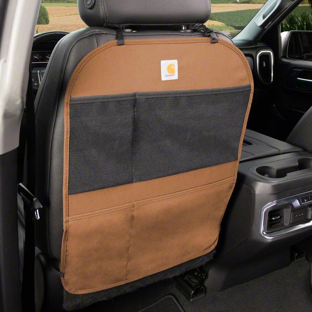 The Carhartt Seatback Organizer enhances your vehicle's storage capabilities while providing rugged protection. Made from durable Carhartt Duck Weave fabric, it shields your seats from stains, mud, snow, spills, and scuffs. With four pockets for added storage—two mesh and two reinforced water-resistant—you can easily organize snacks, toys, tools, and more. Pair with our Carhartt Seat Covers for added protection and storage.