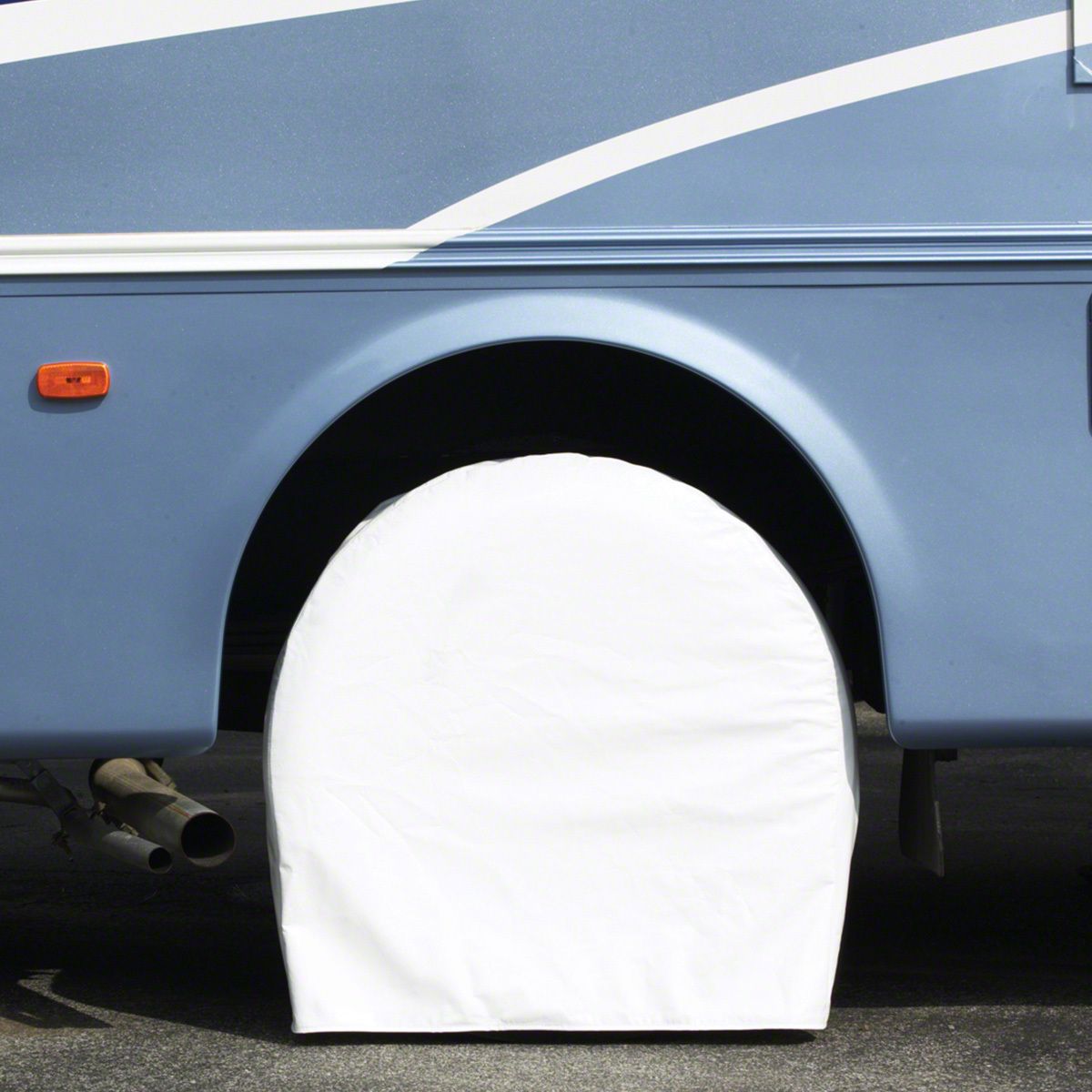 TireSavers make protecting your tires a "SNAP". Our exclusive spring-steel ring design holds the TireSavers in place and eliminates the hassle of crawling around on the ground to secure straps, bungee cords and/or other hardware.