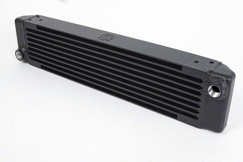 The unique design of CSF's oil cooler line has distinct advantages over conventional style oil coolers (plate-type/stacked oil coolers). The oil coolers can be placed in tighter spaces or different areas of the vehicle that don't have much vertical surface area. Longer rectangular sizes can also help with avoiding the stacking of too many coolers which may cause airflow issues to other components in the cooling system. Inlet/outlet port placement is much easier to route oil lines. Typical oil cooler lines have to be routed from different/opposite ends of the cooler often facing up or down. Usually one line has to run across from one side of the cooler to the other to then be routed together to the feed/return connection of the oil system. The CSF oil coolers are much more robust, durable, and can withstand a higher peak burst rate. This allows the cooler to be mounted in areas that might get high debris (front fascia, diff cooler, side vents, etc...). The CSF oil cooler is designed to withstand a tremendous amount of vibration and debris.