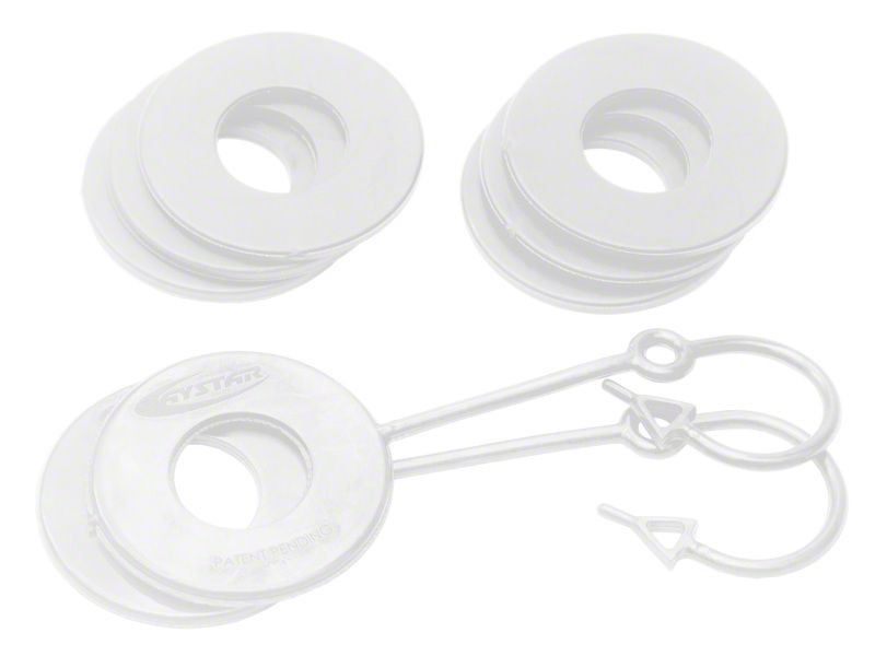 Never lose another D-Ring again! The Daystar Locking D-Ring Isolators install on any standard 3/4 inch shackle and the attached lanyard prevents your D-Ring Bolt from unscrewing causing your D-Ring to fall off. They simply snap into place and loop the lanyard through the hole in your D-Ring Bolt. Also included in this kit are 8 D-Ring Washers which help silence the rattles even more than the D-Ring Isolator by itself. Polyurethane acts as an isolator for the shackle and prevents the shackle from tapping against a bumper or any other recovery point when the vehicle is in motion. The Isolator also protects your bumpers finish from scratches caused by D-Ring contact. Daystar Locking D-Ring Isolators and Washers are available in Black, Red, Blue, Orange, Purple, White, Yellow, Fluorescent Orange, Fluorescent Green, and Fluorescent Pink and help add some color to any off-road vehicle. This kit includes 2 Locking D-Ring Isolators and 8 non-locking washers.