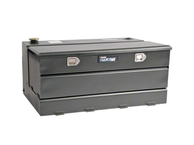 Dee Zee Combo Tanks - The convenience of a utility chest connected to a liquid transfer tank. Constructed of heavy gauge steel. Protected by texture black NRT (No Rust Technology) rust inhibitor powder coat finish. Radius curve design eliminates key weld pressure points. Tanks feature stability baffles, lockable cap, 3/8 in. drainage plug, and venting coupler. Tool box offers lockable storage with high quality stainless steel paddle handles and features gas shocks, hidden hinge, Alumaguard strengthening channel, closed cell foam gasket, and self-adjusting strikers. Tanks are intended for private use (non-commercial). Not designed for use as an auxiliary fuel system. Not for use with gasoline. Does not meet title 49 of the United Stated Federal Registry governing transportation.