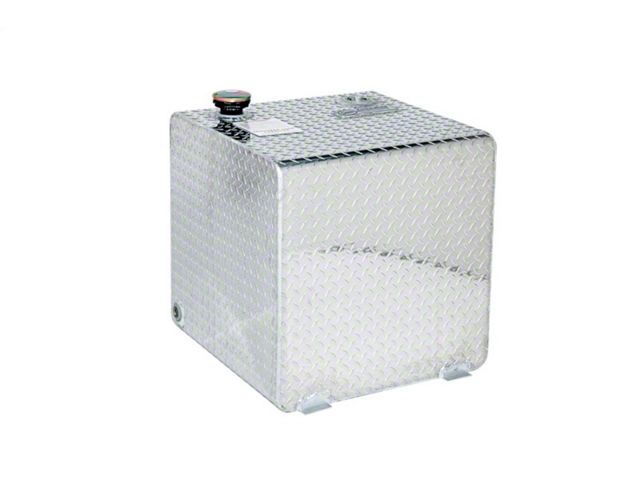 Dee Zee Transfer Tanks - A safe and convenient means for transporting non-flammable liquids. Constructed of heavy gauge Brite-Tread aluminum. Radius curve design eliminates key weld pressure points. Tanks feature stability baffles, lockable cap, 3/8 in. drainage plug, and venting coupler. Tanks are intended for private use (non-commercial). Not designed for use as an auxiliary fuel system. Not for use with gasoline. Does not meet title 49 of the United Stated Federal Registry governing transportation.