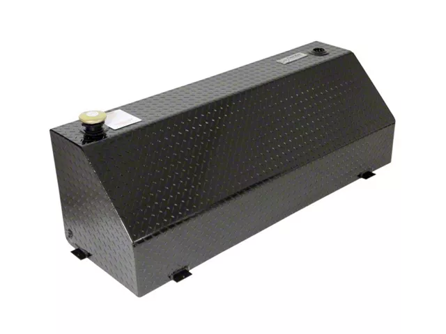 Dee Zee Transfer Tanks - A safe and convenient means for transporting non-flammable liquids. Constructed of heavy gauge Brite-Tread aluminum. Black powder coat finish. Radius curve design eliminates key weld pressure points. Tanks feature stability baffles, lockable cap, 3/8 in. drainage plug, and venting coupler. Tanks are intended for private use (non-commercial). Not designed for use as an auxiliary fuel system. Not for use with gasoline. Does not meet title 49 of the United Stated Federal Registry.