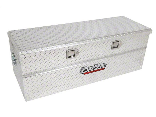 Dee Zee Tool Box - Red Label Chest. Constructed of heavy duty Brite-Tread aluminum. Crown style lid with a full pan double-V stiffener for superior rigidity. Convenient side handles for easy transport. Other features: lockable stainless steel paddle handles, dampened gas shocks, closed cell foam gasket, and self-adjusting strikers. Removable plastic tool tray to help keep small items organized.