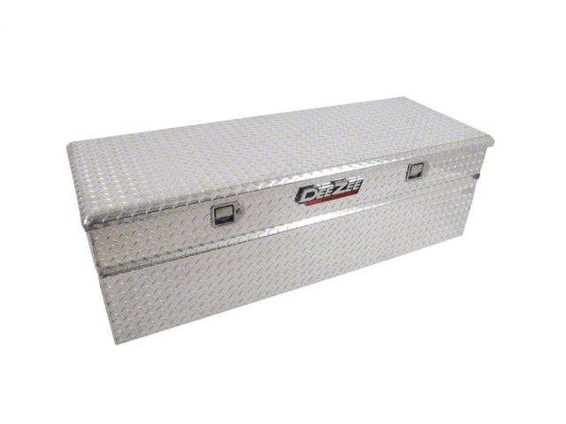 Dee Zee Tool Box - Red Label Chest. Constructed of heavy duty Brite-Tread aluminum. Crown style lid with a full pan double-V stiffener for superior rigidity. Extra wide design for maximum storage space. Other features: lockable stainless steel paddle handles, dampened gas shocks, closed cell foam gasket, and self-adjusting strikers.