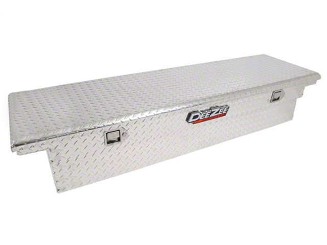 Dee Zee Tool Box - Red Label Single Lid Crossover. Constructed of heavy duty Brite-Tread aluminum with low profile design. Crown style lid with a full pan double-V stiffener for superior rigidity. Other features: lockable stainless steel paddle handles, dampened gas shocks, closed cell foam gasket, and self-adjusting strikers. Removable plastic tool tray to help keep small items organized.