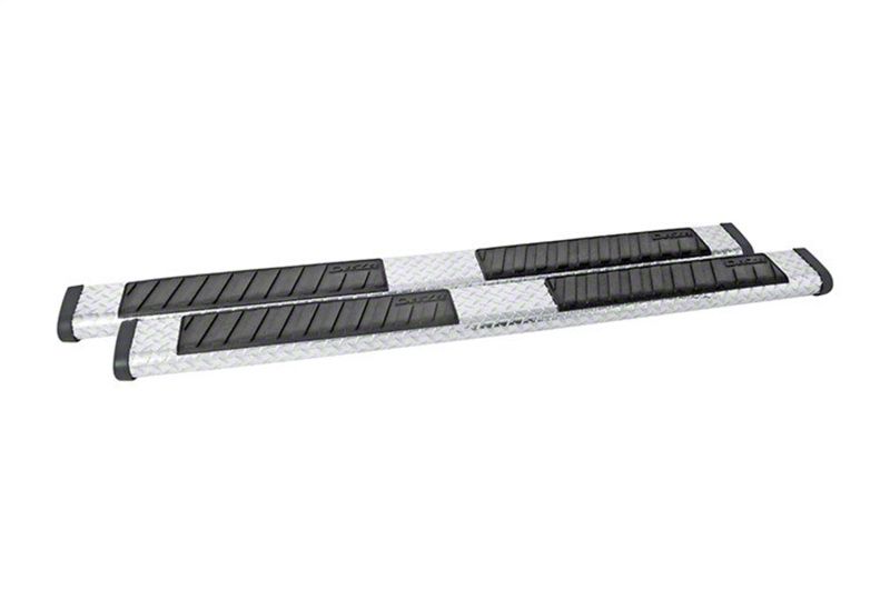 Dee Zee Nerf Steps - A tubular side step for your vehicle. The universal step is combined with custom fit brackets (sold separately) to fit all listed applications. Dee Zee 6 in. step design gives you a beefy step to get into todays trucks. Constructed of heavy duty aluminum, the oval design features molded plastic end caps and step pads. The rugged step pads are embossed with the Dee Zee name and provide a non-slip surface. Protected by textured black NRT(TM) (No Rust Technology) powder coat finish. NRT(TM) is a specially developed coating to increase corrosion protection. Required custom fit bracket kits sold separately. Crew Cab - 6 in. x 86 in.