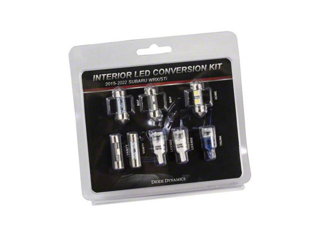 Upgrade. This Interior LED Bulb Pack is compatible with the Subaru WRX STi and gives your vehicle a more modern appearance. This pack includes all the LEDs you need to replace the factory vanity map trunk dome and license plate incandescent bulbs. These bright LEDs are available in a number of colors including cool white red and blue to match your unique style.