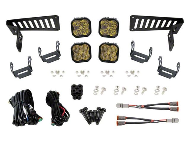 These brackets were designed with a variety of different mounting points for endless mounting options. You can mount multiple pods a larger worklight or even a small light bar to achieve the look you're after! There are even slots on the side of the bracket to mount ditch lights. When standard pods are installed on the outer slot you can fold the windshield down without removing your auxiliary lighting.