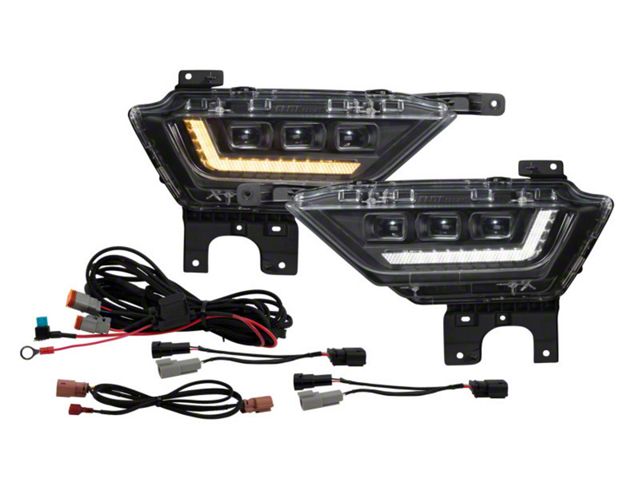 With OEM-grade quality these Elite Series Fog Lights will add a switchback sequential turn signal welcome sequence a brighter DRL bar with selectable color and optional show mode and off-road lighting. Plus you'll get unmatched performance and output backed by an 8-year warranty.