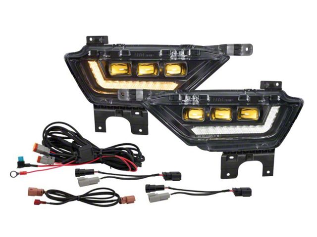 With OEM-grade quality these Elite Series Fog Lights will add a switchback sequential turn signal welcome sequence a brighter DRL bar with selectable color and optional show mode and off-road lighting. Plus you'll get unmatched performance and output backed by an 8-year warranty.