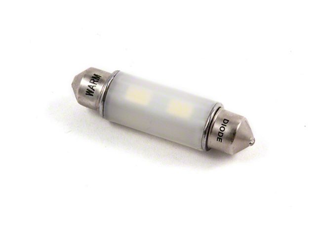The 41mm HP6 LED bulb is a direct replacement for any 41mm-size bulb commonly found in door lights, dome lights, and trunk lights in many vehicles. Populated with eight high-power LEDs arranged in an omnidirectional pattern, the HP6 upgrades the factory yellowish incandescent bulb to a more modern LED appearance while providing far more light output than the factory bulb. Thanks to the frosted cover, the HP6 provides even light distribution and a clean factory-style appearance. With its durable metal terminals, it will fit snugly in the socket, and its lightweight means it won't vibrate loose over time.