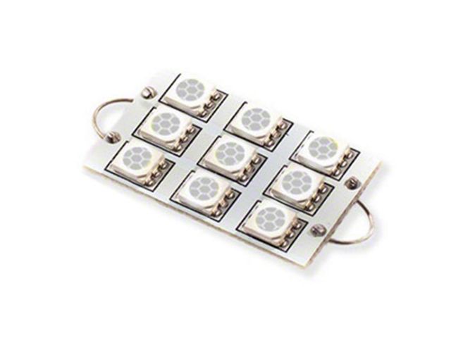 The 44mm SML9 LED bulb is a direct replacement for any 44mm-size bulb commonly found in door lights and trunk lights in many vehicles. Populated with nine 5050-size Epistar SMDs, the SML9 upgrades the factory yellowish incandescent bulb to a more modern LED appearance while adding far more light output than the factory bulb. With its durable metal terminals, it will fit snugly in the socket, and its lightweight means it won't vibrate loose over time.
