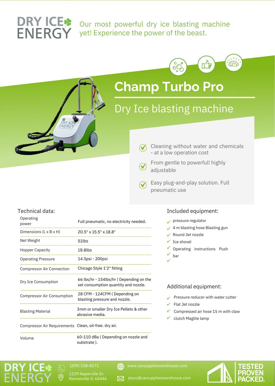 Introducing the Beast - the most powerful machine ever developed by Dry Ice Energy. Designed with the needs of professional detailers in mind, the Beast is the perfect machine to take your detailing to the next level. It's especially suited for underbody and chassis work, but it's also gentle enough for interior carpets and fabric seats.