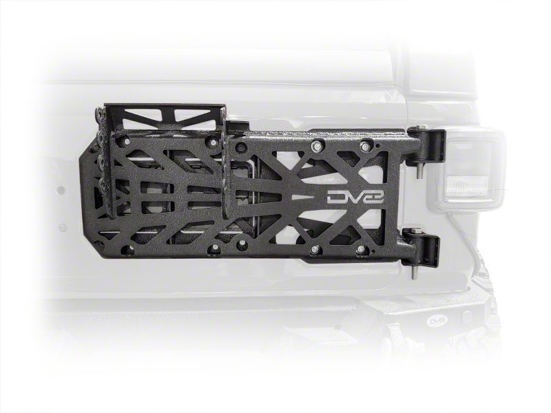 Jeep JL HD Easy Open Hinge Replacement Spare Tire Carrier. The DV8 Offroad TCJL-03 provides OEM style access to the rear of your 2018+ JL and can accommodate up to a 38 inch tire. This tire carrier will help you to get groceries in and out of your Jeep, but make no mistake, this tire carrier isn't just for grocery getters, it has been tested on some of the toughest trails in the world and hasn't let us down yet. It works by completely replacing the factory hinge with a stout hardened steel hinge for ultimate durability. Details: Rubicon tested, Relocates and protects OEM camera, Relocates OEM 3rd brake light, Retains OEM style access, Can carry up to a 38 inch tire.