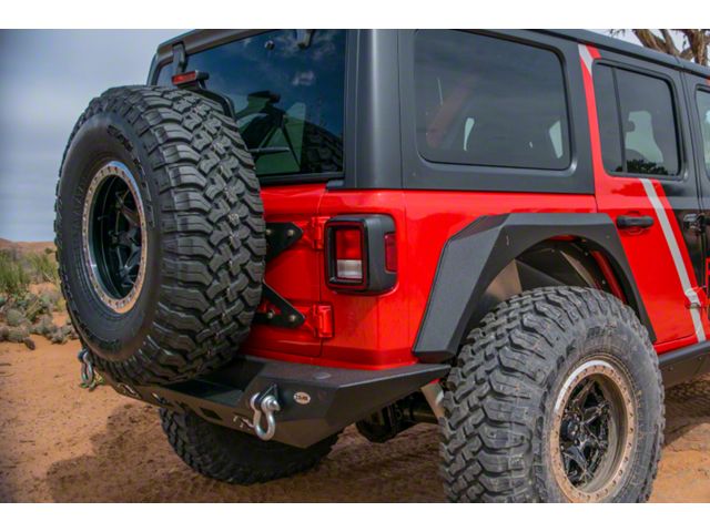 TCJL-01 2018 to present Jeep JL Tailgate Mounted Tire Carrier. The DV8 Offroad TCJL-01 replaces the weakest link on the OEM spare tire mounting system, unlike Jeeps of the past the JL features a cast steel internal tailgate structure. This means that it is much stronger and more capable of handling heavier loads. The DV8 TCJL-01 replaces the factory bracket that connects the spare to the tailgate itself. It also makes the mounting system adjustable to accommodate up to a 35 inch tire and wheel combo. Key Features: Replaces weak link on OEM spare tire mounting system, Accommodates up to a 35 inch tire and wheel combo, Retains easy access to rear of the Jeep, Allows for adjustability of how high the spare is mounted, Retains OEM taillight, Accommodates the factory backup camera.