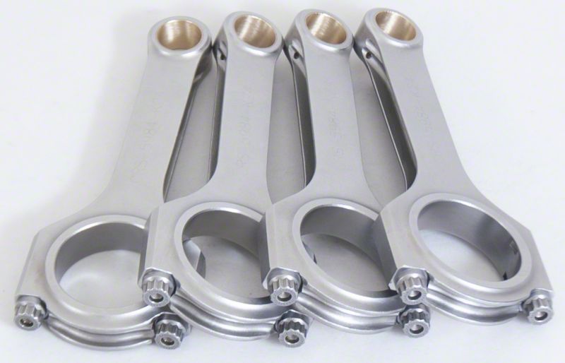 Forged 4340 steel H-Beam connecting rods are forged from a two-piece forging and feature a fully machined and shot-peened surface. Sizing is held to exact tolerances. Sold as a weight-matched set. Recommended for competition use.