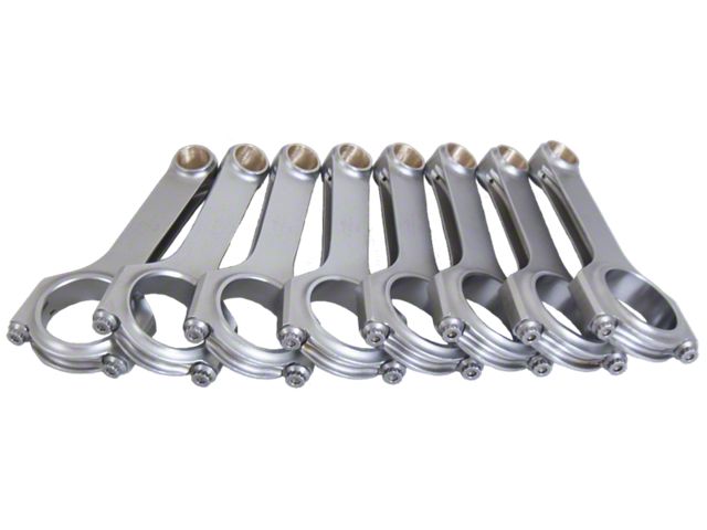 Forged 4340 steel H-Beam connecting rods are forged from a two-piece forging and feature a fully machined and shot-peened surface. Sizing is held to exact tolerances. Sold as a weight-matched set. Recommended for competition use.