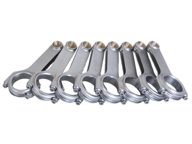 Forged 4340 steel H-Beam connecting rods are forged from a two-piece forging and feature a fully machined and shot-peened surface. Sizing is held to exact tolerances. Sold as a weight-matched set. Recommended for competition use.