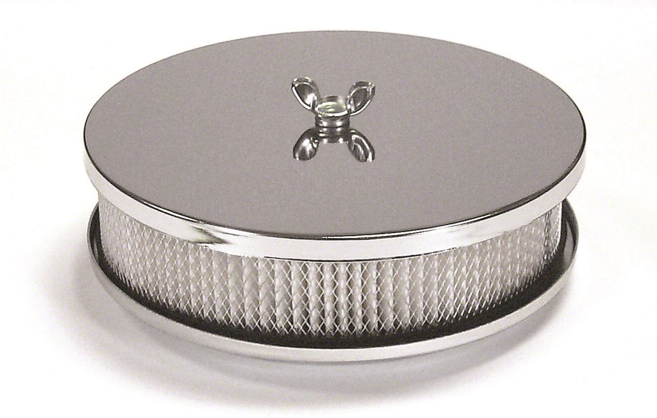 A gleaming, chrome-finished top cover with a plated-steel base encloses a high CFM, replaceable, flame-retardant paper element. Providing the maximum in efficiency and beauty.
