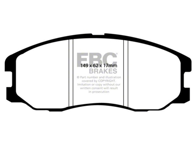 EBC Yellowstuff is an aramid fibre based brake compound with high brake effect form cold and is possibly one of the first ever compounds that can be used for STREET AND TRACK DRIVING. These pads do not require warm up but do get even stronger under the heat of hard driving. These are not a low dust pad and if your desire is for a low dust premium street use pad, you should consider EBC Redstuff.When considering full race use, Yellowstuff has been a strong favourite, having been used for two years in the Swedish Camaro Cup and at numerous other race events where a stock caliper system is fitted.It is also the choice of 90-percent of the Mazda MX5 Miata competitors in the UK race series and has an unblemished record as rotor friendly track pad for vehicles up to 2000 lbs weight or 200 BHP.In the USA the SCCA and NASA drivershave been testing Yellowstuff with feedback and good reports POURING in from a 543 test driver major market proving event with these groups. Read that figure again 543 test drivers.There is no guesswork here.