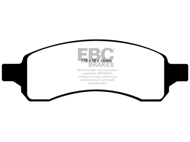 If you simply need a quality OEM replacement pad, look no further than Ultimax. Made in the UK Bristol EBC Brakes manufacturing plant Ultimax is a beautifully engineered brake compound that lasts well, produces minimal dust and is the perfect choice for the urban or daily driver. Why spend more if all you need is a quality replacement pad.The Ultimax pad does include a small percentage of steel fibre to achieve its price point, far less content than our competition where steel fibre content can attain 50 volume and this optimum fibre blend is what makes Ultimax both popular and unique amongst brake blends .Once bedded in Ultimax will inspire confidence in any car light truck or SUV no matter how you drive.Its universal heat range abilities and low rotor wear are additional benefits of the Ultimax pad range which is the EBC worldwide number one selling brake with numbers of sets sold running into tens of millions over the recent years. Unlike many of our performance grades Ultimax has remain unchanged as a pad compound for ten years now, a true testament to its success and customer acceptance. Why change a winning formula.Black coded in the EBC range EBC Ultimax is a fully ECE R 90 approved brake pad range and at its lower price point, less than HALF the price of original parts yet TOTALLY EQUIVALENT by nature of its R 90 brake safety approval, Ultimax offers great value for money and first class driving safety.When replacing brakes of any kind please remember how important brake safety is to your own well being and either have a professional mechanic install your new brakes or if you are a qualified mechanic use the EBC installation DVD as a guide in support of your vehicle owner's manual. These installation guide DVD tasters can be viewed here and the full DVD purchased from online vendors.