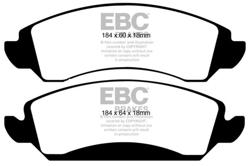 EBC Yellowstuff is an aramid fibre based brake compound with high brake effect form cold and is possibly one of the first ever compounds that can be used for STREET AND TRACK DRIVING. These pads do not require warm up but do get even stronger under the heat of hard driving. These are not a low dust pad and if your desire is for a low dust premium street use pad, you should consider EBC Redstuff.When considering full race use, Yellowstuff has been a strong favourite, having been used for two years in the Swedish Camaro Cup and at numerous other race events where a stock caliper system is fitted.It is also the choice of 90-percent of the Mazda MX5 Miata competitors in the UK race series and has an unblemished record as rotor friendly track pad for vehicles up to 2000 lbs weight or 200 BHP.In the USA the SCCA and NASA drivershave been testing Yellowstuff with feedback and good reports POURING in from a 543 test driver major market proving event with these groups. Read that figure again 543 test drivers.There is no guesswork here.