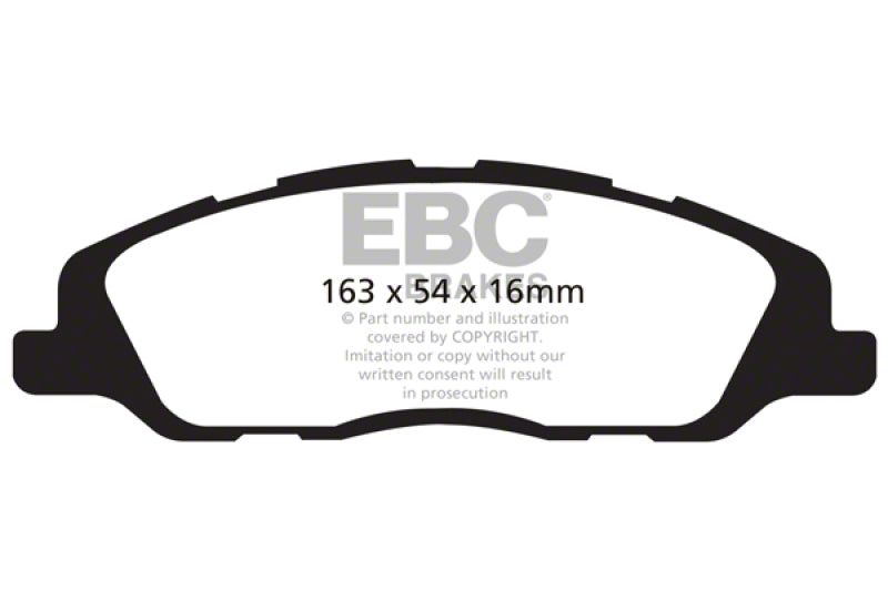 Designed for premium street driving offering better brake effect up to 600-degrees C (1100-degrees F). EBC Greenstuff has a high initial brake effect and gives drivers confidence from first application of the brake pedal. There is no such thing as a NO DUST pad. The very nature of how a brake works requires that some dust be generated to avoid rotor vibration (shimmying). The EBC pad creates less dust and dust is more easily washed off than most. All pads create more dust as they are bedding in especially if rotors are worn. Nominal friction coefficient 0.55. For heavier faster cars and vehicles above 200bhp we strongly recommend Redstuff which DOES offer much less dust.