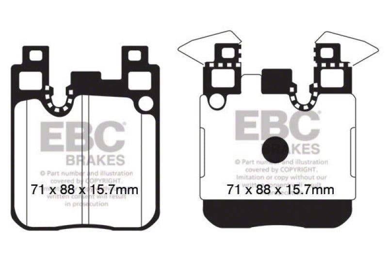 EBC Yellowstuff is an aramid fibre based brake compound with high brake effect form cold and is possibly one of the first ever compounds that can be used for STREET AND TRACK DRIVING. These pads do not require warm up but do get even stronger under the heat of hard driving. These are not a low dust pad and if your desire is for a low dust premium street use pad, you should consider EBC Redstuff.When considering full race use, Yellowstuff has been a strong favourite, having been used for two years in the Swedish Camaro Cup and at numerous other race events where a stock caliper system is fitted.It is also the choice of 90-percent of the Mazda MX5 Miata competitors in the UK race series and has an unblemished record as rotor friendly track pad for vehicles up to 2000 lbs weight or 200 BHP.In the USA the SCCA and NASA drivershave been testing Yellowstuff with feedback and good reports POURING in from a 543 test driver major market proving event with these groups. Read that figure again 543 test drivers.There is no guesswork here.