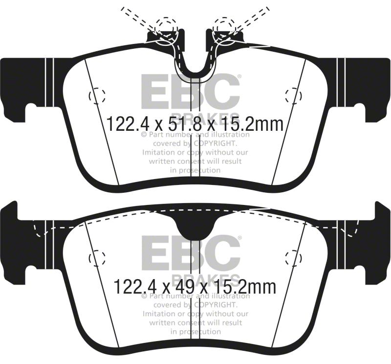 Designed for premium street driving offering better brake effect up to 600-degrees C (1100-degrees F). EBC Greenstuff has a high initial brake effect and gives drivers confidence from first application of the brake pedal. There is no such thing as a NO DUST pad. The very nature of how a brake works requires that some dust be generated to avoid rotor vibration (shimmying). The EBC pad creates less dust and dust is more easily washed off than most. All pads create more dust as they are bedding in especially if rotors are worn. Nominal friction coefficient 0.55. For heavier faster cars and vehicles above 200bhp we strongly recommend Redstuff which DOES offer much less dust.