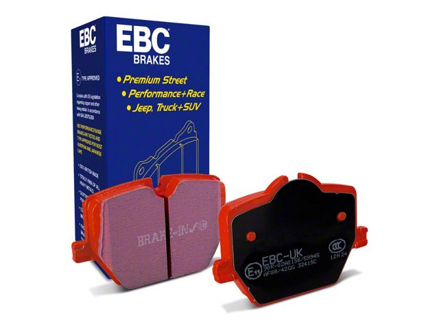 There are TWO reasons our customers love Redstuff, First because they are the lowest dust pad we have encountered by reducing dust by 60-90-percent. Plus the minimal dust you see is very easily removed with a simple sponge wash as it contains no steel fibre particles as in ALL OTHER pads. Second they brake like an alligator right from cold (as good as Original pads or better) and just get better as they heat up.This material is a Synthetic Fiber based brake compound enhanced with ceramic particles. If you have previously tried EBC redstuff (pre-ceramic compound) this material is light years ahead. It lasts longer; it brakes better and is quieter. Being a hard wearing pad, bed-in times can be as long as 1000 miles and drivers must be patient until the pad takes up the shape of their disc (brake rotor). This is a truly impressive fast road pad for repeated heavy braking.It emits far less dust than semi-metallic pads and has been proven to stop a passenger car/sedan/sport compact/hot hatch 13 metres quicker than OEM pads from 100mph/160kph. Features EBC Brake-In surface coating which conditions rotor surface and accelerates pad bed-in. Nominal friction coefficient 0.5 with approx. 50-percent dust reduction.Most EBC Red Ceramic pads are approved to ECE R90 brake safety regulation.