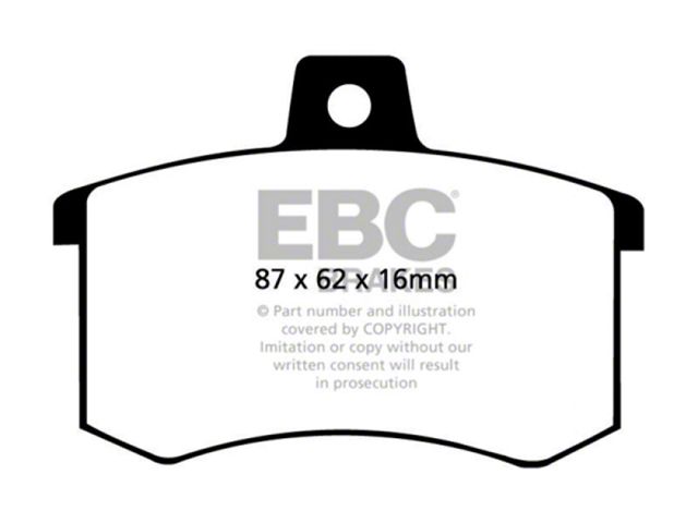 Designed for premium street driving offering better brake effect up to 600-degrees C (1100-degrees F). EBC Greenstuff has a high initial brake effect and gives drivers confidence from first application of the brake pedal. There is no such thing as a NO DUST pad. The very nature of how a brake works requires that some dust be generated to avoid rotor vibration (shimmying). The EBC pad creates less dust and dust is more easily washed off than most. All pads create more dust as they are bedding in especially if rotors are worn. Nominal friction coefficient 0.55. For heavier faster cars and vehicles above 200bhp we strongly recommend Redstuff which DOES offer much less dust.