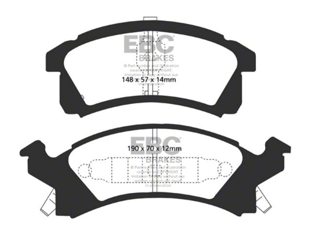 EBC Yellowstuff is an aramid fibre based brake compound with high brake effect form cold and is possibly one of the first ever compounds that can be used for STREET AND TRACK DRIVING. These pads do not require warm up but do get even stronger under the heat of hard driving. These are not a low dust pad and if your desire is for a low dust premium street use pad, you should consider EBC Redstuff.When considering full race use, Yellowstuff has been a strong favourite, having been used for two years in the Swedish Camaro Cup and at numerous other race events where a stock caliper system is fitted.It is also the choice of 90-percent of the Mazda MX5 Miata competitors in the UK race series and has an unblemished record as rotor friendly track pad for vehicles up to 2000 lbs weight or 200 BHP.In the USA the SCCA and NASA drivershave been testing Yellowstuff with feedback and good reports POURING in from a 543 test driver major market proving event with these groups. Read that figure again 543 test drivers.There is no guesswork here.