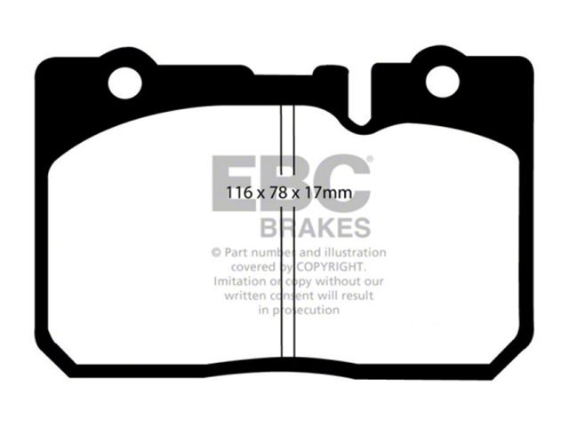 Designed for premium street driving offering better brake effect up to 600-degrees C (1100-degrees F). EBC Greenstuff has a high initial brake effect and gives drivers confidence from first application of the brake pedal. There is no such thing as a NO DUST pad. The very nature of how a brake works requires that some dust be generated to avoid rotor vibration (shimmying). The EBC pad creates less dust and dust is more easily washed off than most. All pads create more dust as they are bedding in especially if rotors are worn. Nominal friction coefficient 0.55. For heavier faster cars and vehicles above 200bhp we strongly recommend Redstuff which DOES offer much less dust.