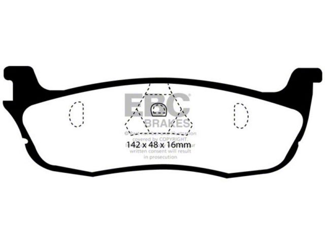 EBC Yellowstuff is an aramid fibre based brake compound with high brake effect form cold and is possibly one of the first ever compounds that can be used for STREET AND TRACK DRIVING. These pads do not require warm up but do get even stronger under the heat of hard driving. These are not a low dust pad and if your desire is for a low dust premium street use pad, you should consider EBC Redstuff.When considering full race use, Yellowstuff has been a strong favourite, having been used for two years in the Swedish Camaro Cup and at numerous other race events where a stock caliper system is fitted.It is also the choice of 90-percent of the Mazda MX5 Miata competitors in the UK race series and has an unblemished record as rotor friendly track pad for vehicles up to 2000 lbs weight or 200 BHP.In the USA the SCCA and NASA drivershave been testing Yellowstuff with feedback and good reports POURING in from a 543 test driver major market proving event with these groups. Read that figure again 543 test drivers.There is no guesswork here.