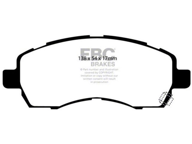 Designed for premium street driving offering better brake effect up to 600-degrees C (1100-degrees F). EBC Greenstuff has a high initial brake effect and gives drivers confidence from first application of the brake pedal. There is no such thing as a NO DUST pad. The very nature of how a brake works requires that some dust be generated to avoid rotor vibration (shimmying). The EBC pad creates less dust and dust is more easily washed off than most. All pads create more dust as they are bedding in especially if rotors are worn. Nominal friction coefficient 0.55. For heavier faster cars and vehicles above 200bhp we strongly recommend Redstuff which DOES offer much less dust.