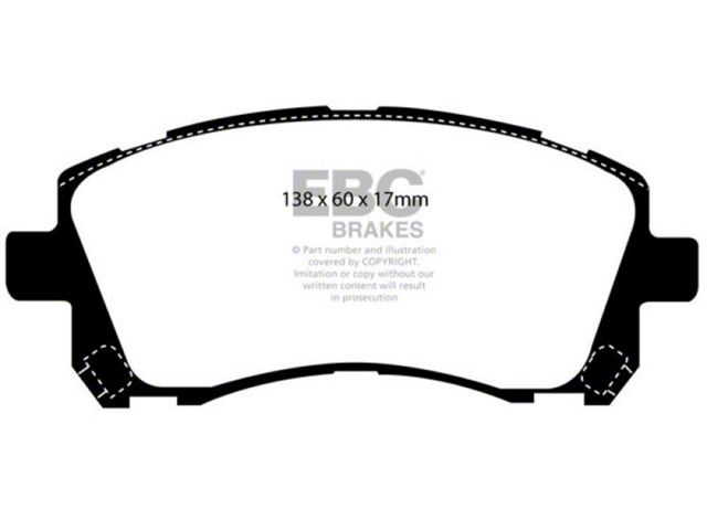 EBC Yellowstuff is an aramid fibre based brake compound with high brake effect form cold and is possibly one of the first ever compounds that can be used for STREET AND TRACK DRIVING. These pads do not require warm up but do get even stronger under the heat of hard driving. These are not a low dust pad and if your desire is for a low dust premium street use pad, you should consider EBC Redstuff.When considering full race use, Yellowstuff has been a strong favourite, having been used for two years in the Swedish Camaro Cup and at numerous other race events where a stock caliper system is fitted.It is also the choice of 90-percent of the Mazda MX5 Miata competitors in the UK race series and has an unblemished record as rotor friendly track pad for vehicles up to 2000 lbs weight or 200 BHP.In the USA the SCCA and NASA drivershave been testing Yellowstuff with feedback and good reports POURING in from a 543 test driver major market proving event with these groups. Read that figure again 543 test drivers.There is no guesswork here.