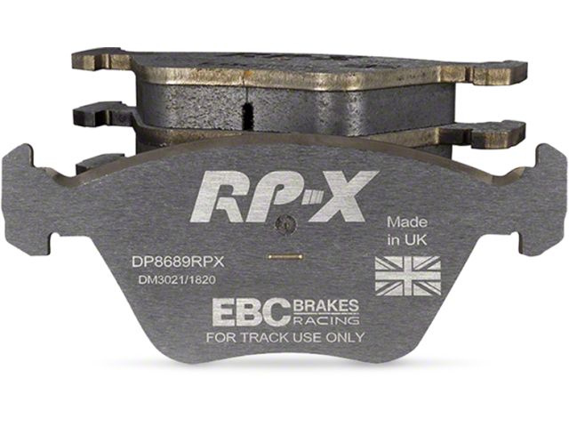 RP-X Racing Front Brake Pads by EBC. EBC Racings RP-X compound is an ultra-high performance track and race pad designed for performance vehicles driven hard on track and for dedicated race cars. RP-X has a very stable friction coefficient of 0.55 mu up to and beyond 850 C, making it an excellent performer for even the most demanding vehicle applications.