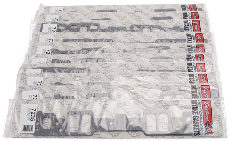 Edelbrock part 72358 Bulk Pack Intake Gaskets for E-Tec 170 Small-Block Chevy allow for optimum flow and performance. Any gasket can create a seal, but a good gasket can do it with less clamping force, and for a longer period of time. The new MP-2N Micropore technology does not use solvents making our gaskets environmentally friendly. Impervious to most chemicals, this synthetic fiber composite provides a high recovery under load. This means that when compressed, the gasket will conform to any imperfections on the sealing surface even using lower flange pressures. A nitrile bead around each port opening makes the seal even better.