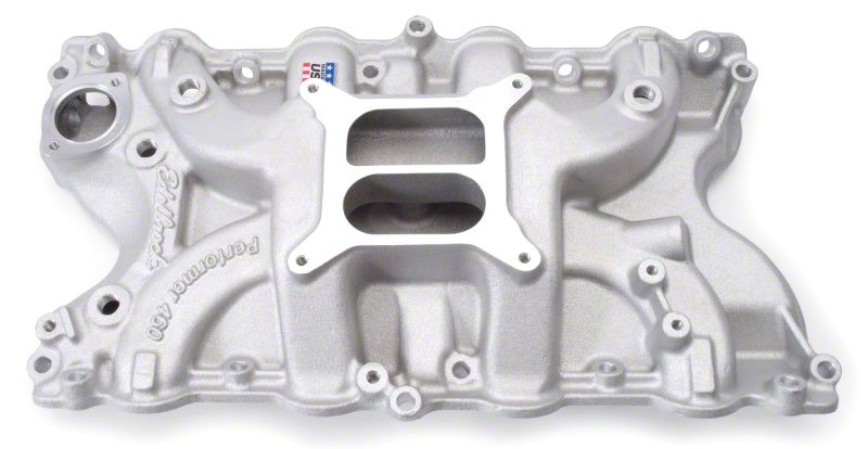 Edelbrock part #2166 Performer 460 intake manifold is designed for street 429/460 c.i.d. Ford V8's. Will not fit 429 Cobra-Jets or 1966-68 462 Lincolns and will not accept stock spread-bore carb. Will not fit 1988 and later models. Edelbrock's Patented Dual-plane, low-rise design with a 180-degree firing order greatly improves torque over a wide rpm range for excellent throttle response from off-idle through 5500rpm. This Performer intake manifold is ideal for passenger cars, trucks, 4x4s, tow vehicles and RVs. Must use stock OE EGR plate!