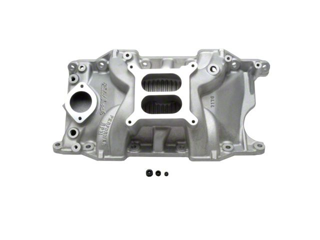 Edelbrock part 7176 Performer RPM intake manifold is designed for 340-360 c.i.d. Chrysler V8s and 318 c.i.d. engines with 340-360 cylinder heads. Latest technology in dual-plane design results in both excellent low-rpm torque and outstanding high rpm horsepower. Recommended for high-performance street, strip and fresh water marine applications. Accepts 1975 and earlier waterneck only. Will not accept stock Thermo-Quad carburetor. Will not fit 1992 and later Magnum engines. Match with Performer RPM heads 60779 for maximum performance.