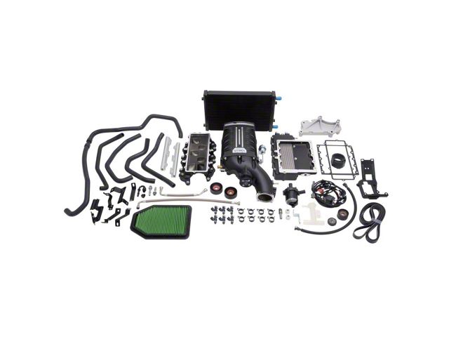 The Edelbrock Supercharger System Without Tuner #15270 is designed exclusively for the 2012-18 Jeep Wrangler JK featuring a unique design with minimal components that makes it possible to fit under the stock hood with no cutting or body modifications. At the core of this system is the Eaton Gen VI 1320 TVS rotating assembly with a four-lobe design and 160 degrees of twist for maximum flow, minimum temperature rise and quiet operation for excellent drivability. Horsepower output is 317 at the wheel with 277 ft-lbs of RWTQ (manual transmission). This supercharger has an integrated bypass valve to help eliminate parasitic loss under light throttle, improving mileage potential. Our unique and efficient inlet configuration results in a shorter, less restrictive intake path for improved airflow, without the need for a jack-shaft. Keeping the air cool is a high-capacity air-to-water intercooler and low-temp heat exchanger. This system #15270 fits 2012-18 JK models but does not include the hand-held programmer or calibration. Complete systems with programmer and calibration are available under part number 1527 for the 2012-14 Jeep Wrangler, and part number 1528 for the 2015-18 Jeep Wrangler.