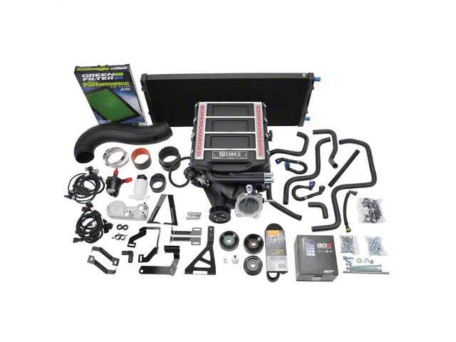 This new addition to Edelbrock's expanding line of superchargers is highlighted by significant improvements for Chevrolet/GMC/Cadillac 2015-2020 SUVs & 2014-2018 full size trucks with the GM 6.2L L86 V8 engine. This is a bolt-on performance kit that is emissions legal in all 50 states and produces 576 horsepower with 537 ft-lbs of torque at the rear wheel. This is the perfect power adder whether you plan to tow a trailer, haul heavier loads, or you just want to feel your truck/SUV come to life without sacrificing daily drivability! The new Edelbrock supercharger Kit #15664 for Chevy/GMC/Cadillac trucks and SUVs is a complete redesign of our #1565 and #1566 kits featuring an all-new manifold that now houses Eaton's biggest R2650 TVS rotors with 170-degree high-twist lobes, bigger bearings and beefier timing gears for unparalleled efficiency and reliability. The Edelbrock supercharger Kit for the 6.2L V8 fits under the stock hood with absolutely no cutting or modifications required. And if you're concerned about the effect on MPG, the increase in power comes with little to no loss in fuel economy thanks to the supercharger's integrated bypass valve that mitigates parasitic power loss during normal driving. This new kit is a true bolt-on that requires no additional modifications to the stock 6.2L engine. For those who want more power, the R2650 supercharger can support more than 1,000 horsepower at the flywheel with the right combination of parts. This Edelbrock supercharger features a self-contained lubrication system with a 100,000-mile service interval with a high-capacity Dual-Pass 3-Core (DP3C) integrated intercooler and comes finished in a durable black powder-coating that blends nicely with the engine. Each kit includes a complete set of preformed hoses, hardware and a full-color manual that provides clear step-by-step instructions for ease of installation. This system is designed and manufactured in the USA and is covered by a free 3-yeear/36,000-mile warranty.