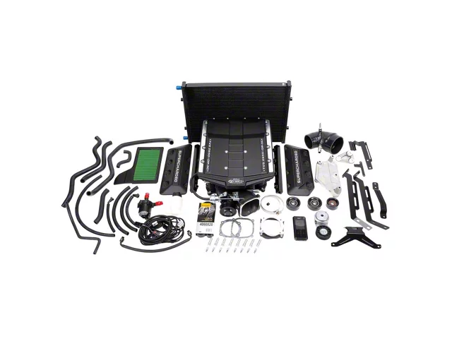 Are you ready to add serious horsepower under the hood of your 2018-21 Ford Mustang GT? The Edelbrock Supercharger Kit #15832 is a 50-state emissions-legal system that is dyno-proven to produce 623 horsepower and 510 ft-lbs of torque to the rear wheels with no other modifications required! That means no cutting to stock body or hood so your car retains the stock hood and cowl. At the heart of this system is Eaton's biggest R2650 TVS rotor assembly housed in a new manifold with an integrated high-capacity DP3C (dual-pass, three-core) air-to-water intercooler for lower inlet air temperatures and increased power potential. The 170-degree high-twist lobes, bigger bearings and beefier timing gears ensure maximum reliability with smooth acceleration throughout the powerband. The Edelbrock Supercharger for the 5.0L V8 fits under the stock hood with absolutely no cutting or modifications required. And if you're concerned about the effect on MPG, the increase in power comes with little to no loss in fuel economy thanks to the supercharger's integrated bypass valve that mitigates parasitic power loss during normal driving. Our new kit is a true bolt-on that requires no additional modifications to the stock engine. For those who want more power, we've got an Edelbrock Stage 2 Upgrade Kit that can be added to transform your Mustang into a track-ready beast! This Edelbrock Supercharger has a self-contained lubrication system with a 100,000-mile service interval and comes finished in a durable black powder-coating that blends nicely into the engine compartment. Each kit includes a complete set of preformed hoses, hardware and a full-color manual that provides clear step-by-step instructions for ease of installation. This system is designed and manufactured in the USA and is covered by our industry-leading 3-year/36,000-mile warranty.