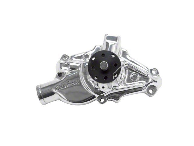 Edelbrock #8892 Water Pump small block Chevy reverse short polished ideal to prevent overheating in street rods and street machines, as well as in tow rigs and motorhomes. Using state-of-the-art racing technology, Edelbrock has designed these "super cooling" Water Pumps to provide maximum flow, maximum pressure and equal distribution to both sides of the block within 1%. Available for most popular applications, these high performance pumps flow in only one direction for optimum efficiency. The casting's computer-designed internal passages and precision powdered metal impeller produce the maximum flow rate possible.