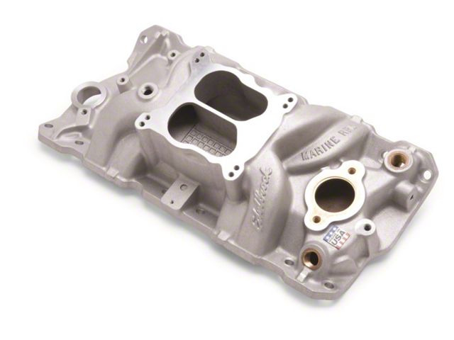 Edelbrock part 2504 Performer RPM Q-Jet marine intake manifold is designed for 1955-86 262-400 c.i.d. Chevy V8s for spread-bore (Q-Jet) or square-bore carbs. This Performer RPM Q-Jet intake manifold is designed specifically for demanding marine applications and delivers maximum power and a broad torque curve for high-performance marine.