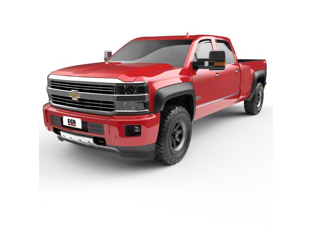 EGR Rugged Look Fender Flares features EGR's OEM grade quality, no drill installation process. They are the perfect DIY upgrade for your vehicle. The UV protected, lightly textured finish is easy to clean and fade resistant. EGR Fender Flares can also be painted to match your vehicle. Increase tire coverage of your fenders by up to 2 inches. Limited lifetime warranty. FRONT & REAR SET.
