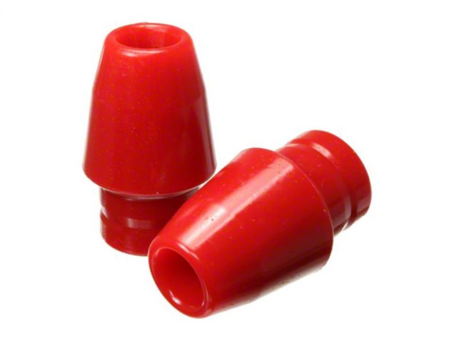 Energy Suspension performance bump stops help cushion a collapsing suspension, preventing bottoming-out and expensive vehicle damage. Hyper-Flex performance polyurethane bump stops for control arms, traction bars, leaf springs, etc. are guaranteed to last longer and operate more efficiently than original rubber stops. The smaller, general purpose bullet shaped snubber is ideal for control arms. The low profile button head is for use when clearance is limited. Our large competition race style bump stops smooth out compression better and have a large reinforced metal plate welded to the mounting plate and molded-in. Each style is specially designed for a perfect and custom fit and each style has its own durometer, hardness, characteristics. Energy's wide selection of bump stops are available in red or black color.